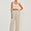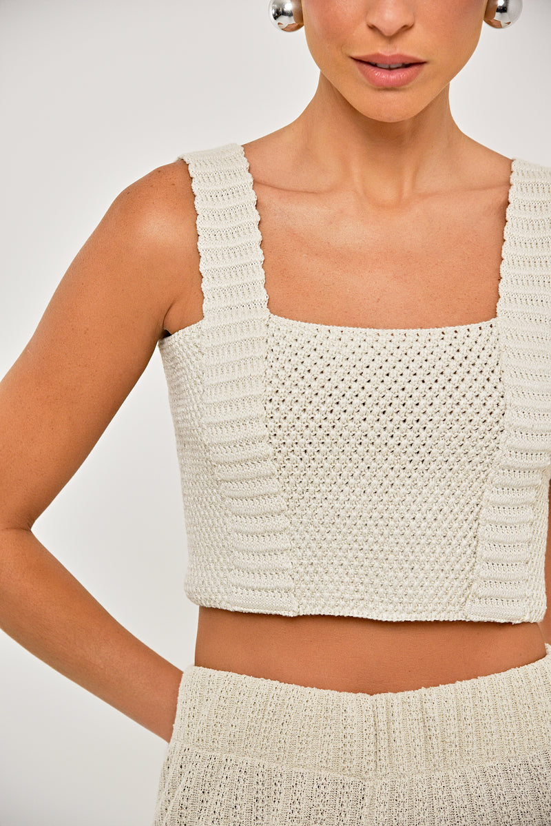 Blusa Linda confeccionada em tricot na cor ecru. Modelagem slim, regata com alças largas, decote quadrado, comprimento curto e acabamento delicado. Coleção: Respira.