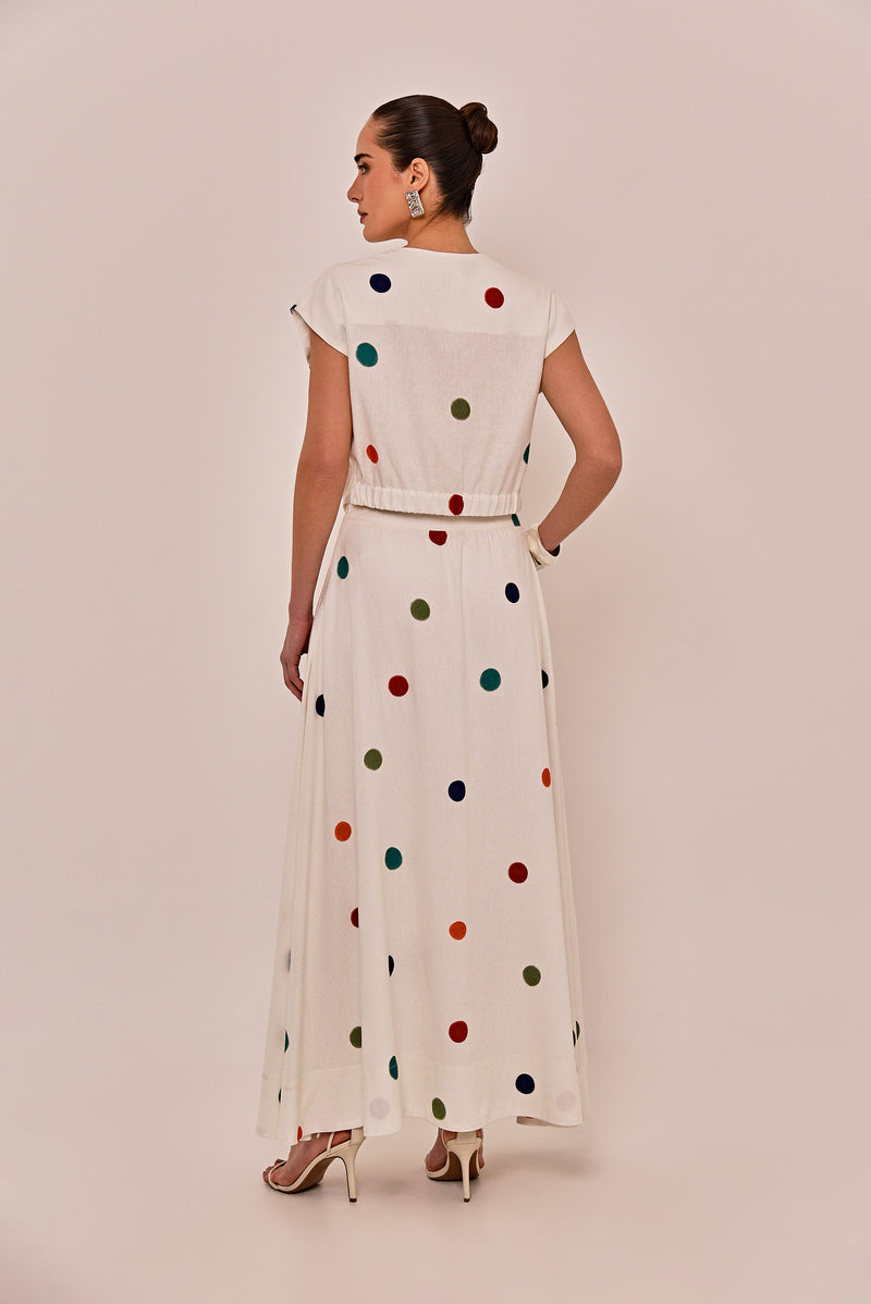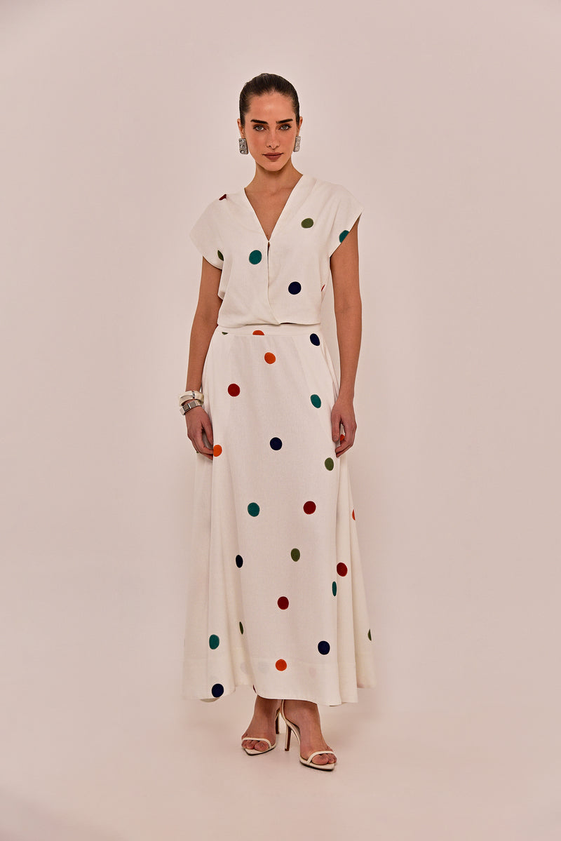 Use a blusa Trevo com a saia Trendy em mesmo tecido e estampa e tenha um look completo. Parte da coleção Lisboa, onde tradição e modernidade se encontram em uma estética elegante e luminosa.