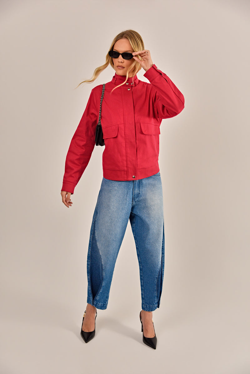 A calça Berta é confeccionada em jeans com lavagem média. Possui modelagem barrel, cintura média, cós aplicado com passantes e acabamento simples. A peça entrega um caimento estruturado com leve amplitude nas pernas, trazendo conforto e personalidade ao visual, uma peça que transita facilmente entre produções casuais ou sofisticadas.