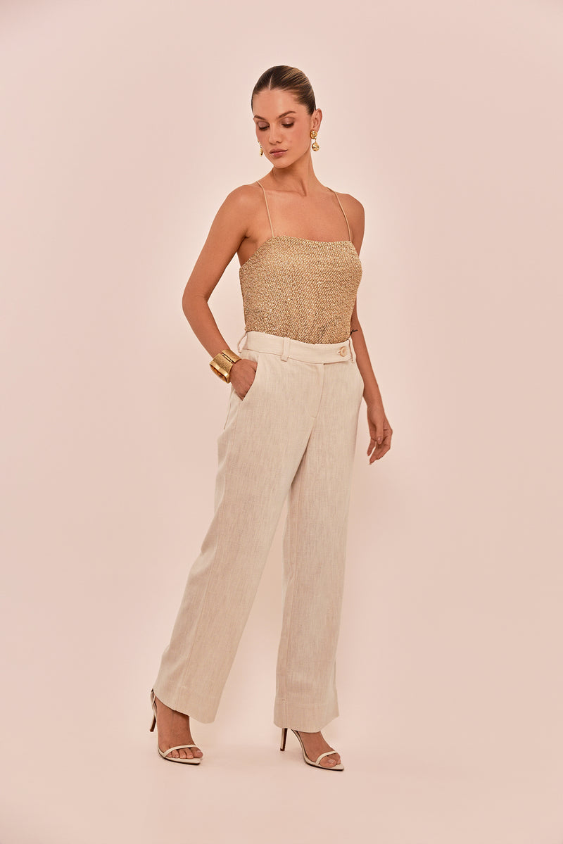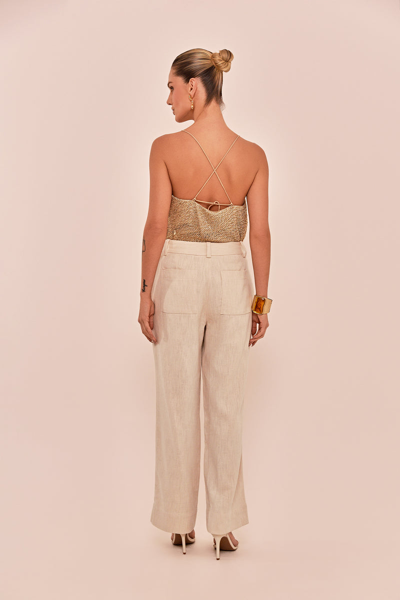 Use a calça Petit com uma infinidade de blusas, criando looks elegantes e fáceis de elaborar para diversas ocasiões. Parte da coleção Marrakech, onde tradição e modernidade se encontram em uma estética sofisticada e atemporal.