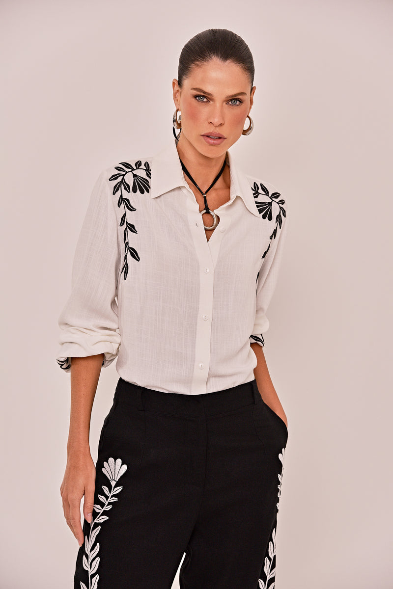 TECIDO: CAMBRAIA DE LINHO COM BORDADO