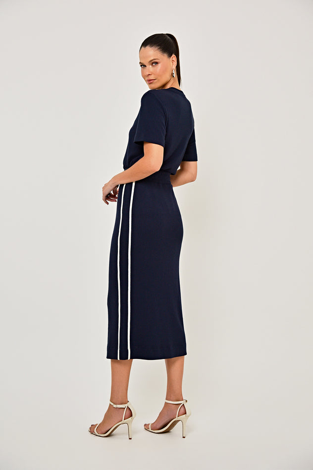 Invista no look completo. Use a Camiseta Letícia com a Saia Lilica em mesmo tecido e cor.