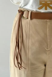 Cinto Alaska confeccionado em couro, disponível nas cores off white e caramelo. Possui espessura media, fivela arredondada e uma das pontas em franja. Peça perfeita para complementar looks e elevar a produção. Coleção: Tokyo.