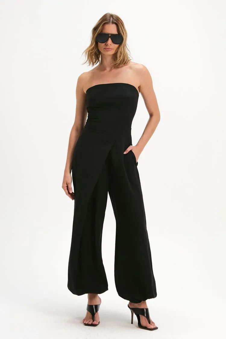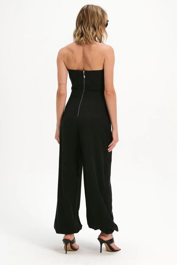 O Macacão Jasmin une design moderno e elegância com uma modelagem marcante. Sem alças, conta com sustentação por elástico interno no decote, garantindo conforto e segurança ao vestir. O recorte na cintura valoriza a silhueta, enquanto a calça em modelagem baloon traz personalidade à peça.