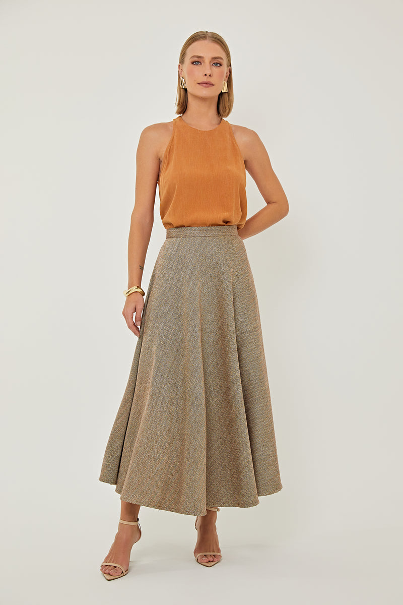 Invista no look completo. Use a saia Girassol com o Blusa Giovana em mesmo tecido e cor.
