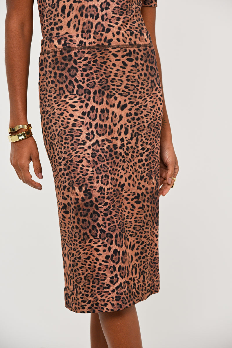 Saia Kyoto confeccionada em malha canelada estampa animal print. Modelagem ajustada e comprimento midi, padronagem em tons terrosos confere personalidade e modernidade, enquanto o tecido com garante um caimento elegante e confortável. Ideal para composições ousadas ou produções mais neutras com foco no detalhe. Coleção: My Choices.
