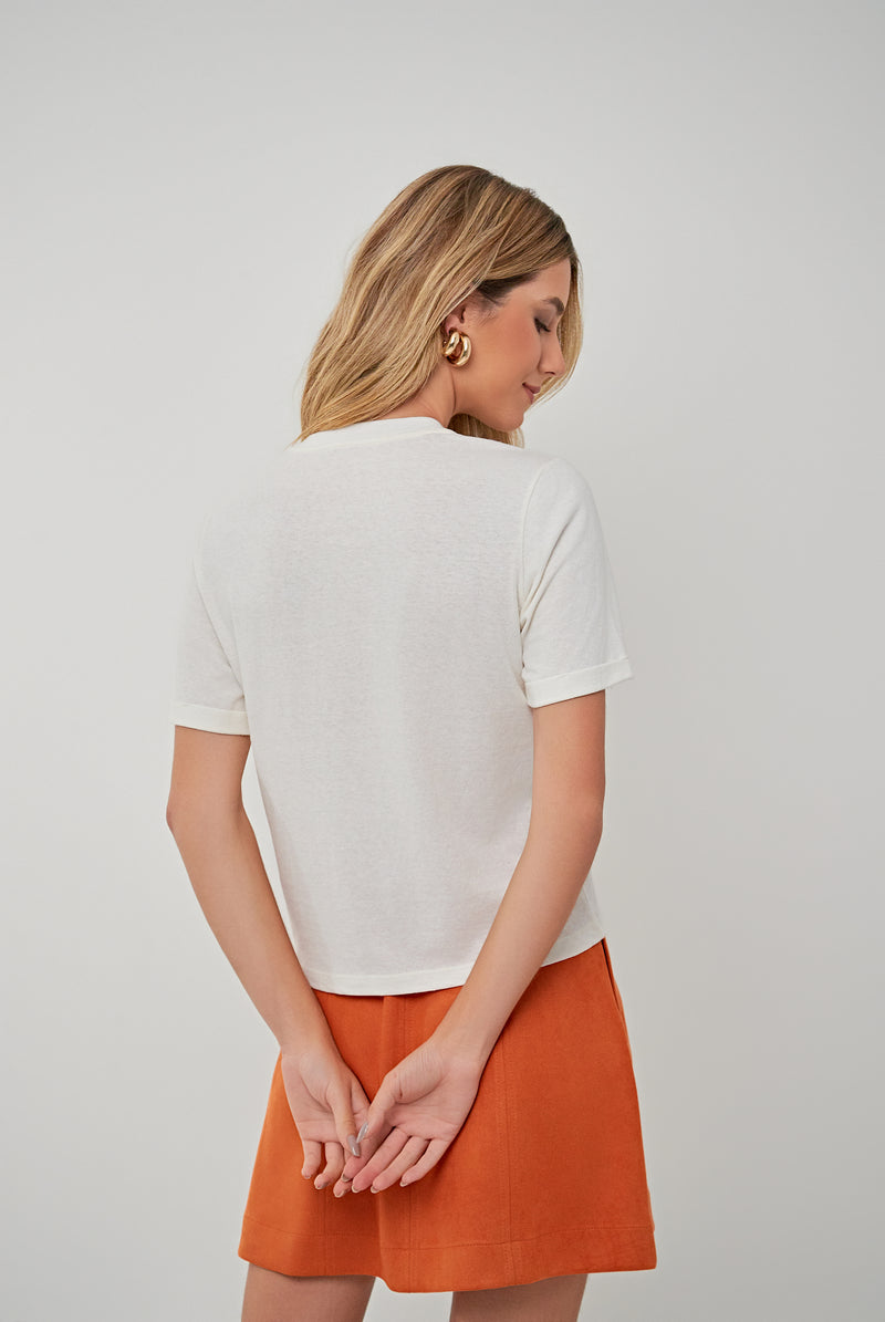 O tom laranja tinge os looks da temporada, além de tirá-los do óbvio adiciona um toque fashion. Aposte na saia Jurerê em suede com caimento leve, perfeito para looks com o mood casual chic.