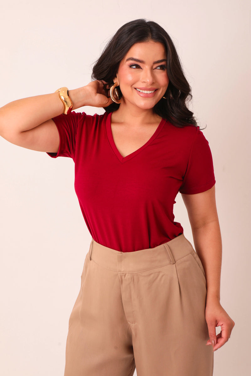 T-SHIRT GOLA V SOL VERMELHA
